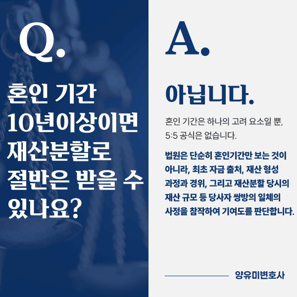 Q. 혼인 기간 10년 이상이면 재산분할로 절반은 받을 수 있나요?