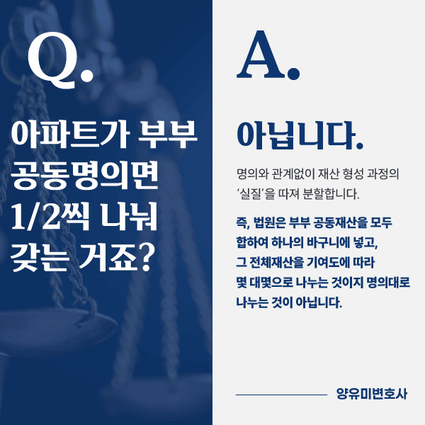 Q. 아파트가 부부 공동명의면 1/2씩 나눠 갖는 거죠?