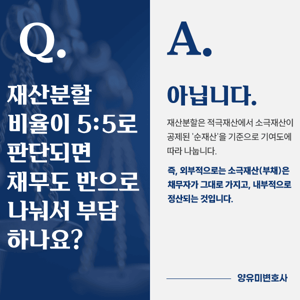 Q. 재산분할 비율이 5:5로 판단되면, 채무도 5:5로 나눠서 부담하나요?