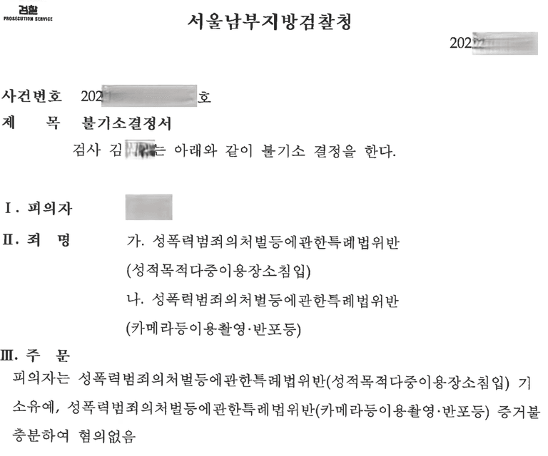 ② 카메라등이용촬영·반포 등 – 혐의없음(증거불충분)