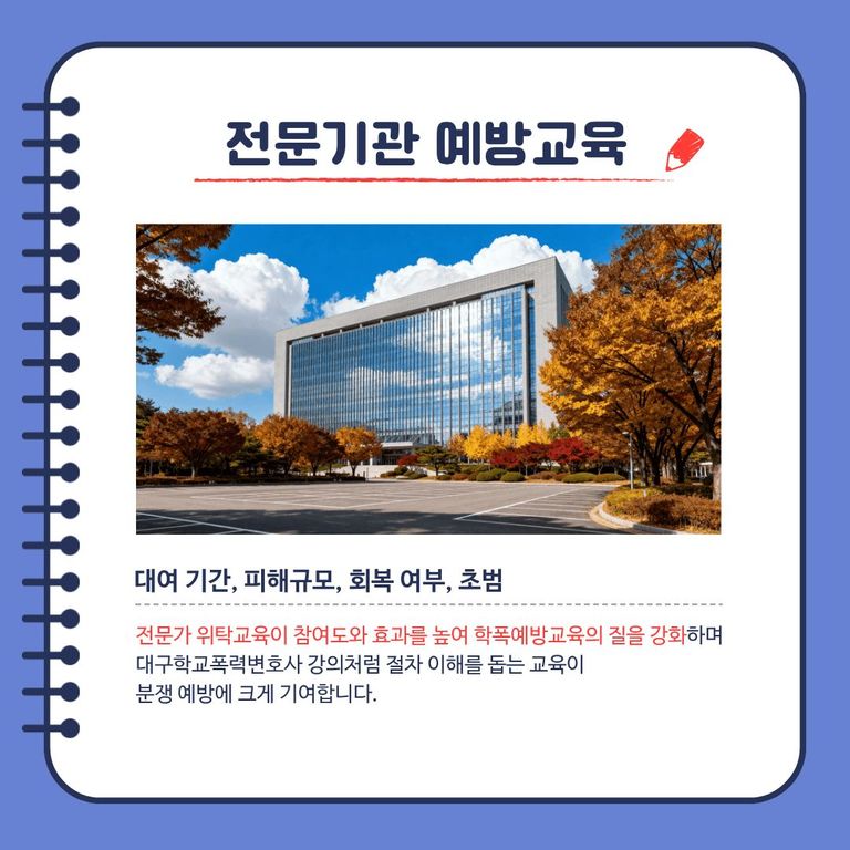 정확한 절차와 체계적인 대구학폭예방교육은 학생 보호와 분쟁 최소화의 핵심입니다.