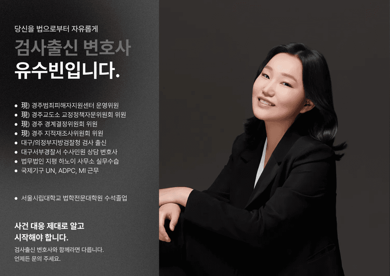 안녕하십니까. 검사출신여성변호사 유수빈 변호사입니다.