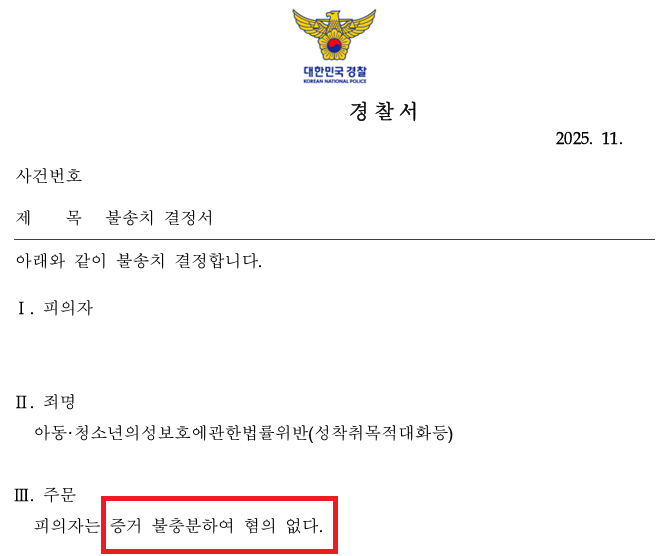 5. A씨는 성착취목적대화 사건에서 저희의 조력을 받음으로써 수사 단계에서 불송치 처분을 받으셨습니다.