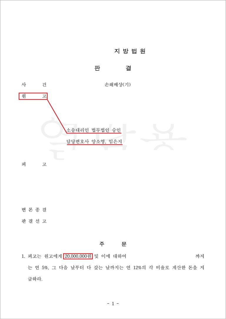 ▼ 그 결과 2,000만 원의 위자료가 인정되었습니다.