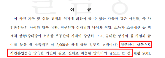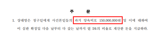 📌 사건본인들의 과거 양육비로 1억 5천만 원을 지급하라.