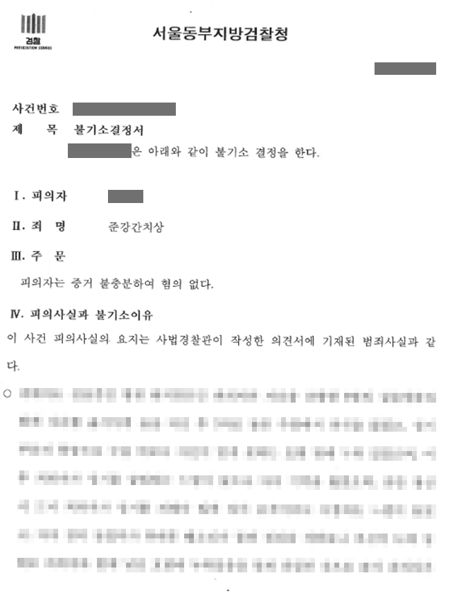 검찰은 저의 변론을 받아들여 의뢰인의 준강간 혐의에 대해 불기소처분을 하였습니다. 덕분에 의뢰인은 하룻밤 잠자리로 인해 억울하게 성범죄자가 될 수도 있었던 위기에서 벗어날 수 있었습니다.