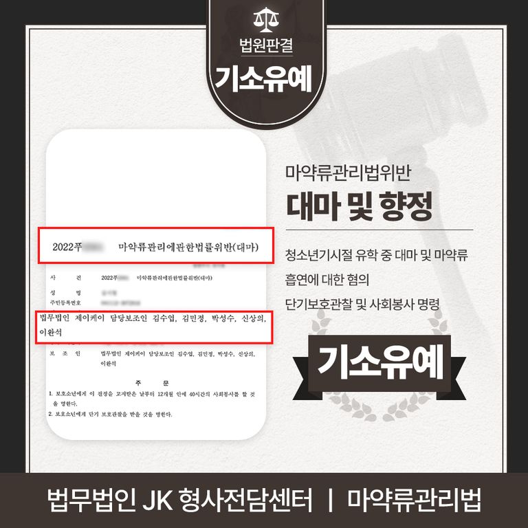 청소년기 마약 사건은 단순 처벌 문제가 아니라, 진로, 취업, 군 입대, 유학, 자격증 취득 등 미래 전체에 영향을 주기 때문에 기소 유예는 사실상 가장 최선의 결론이라 할 수 있습니다.
