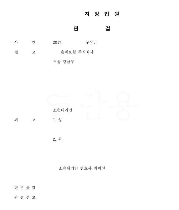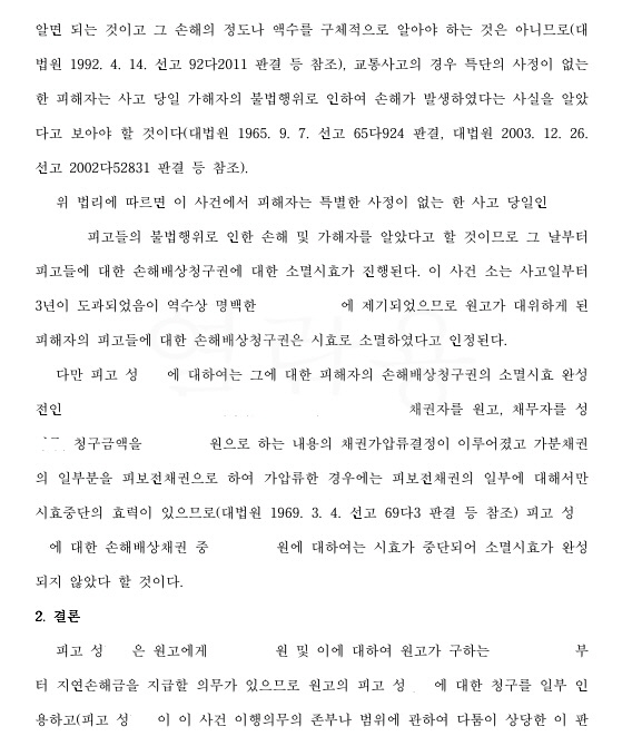실제, 직원 성모씨의 무면허 운전으로 인하여 사용자책임을 물을수 밖에 없었던 의뢰인 최모씨께서 이러한 소멸시효에 대한 정확한 주장으로 책임을 면한 사례를 판결문을 통해 소개해 드립니다.