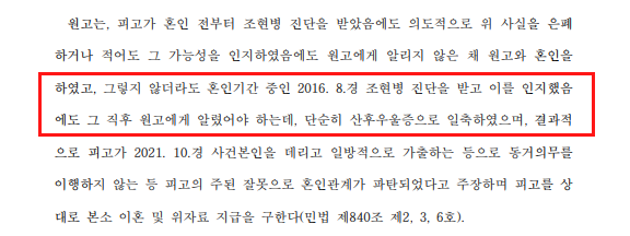 조현병 진단 사실을 배우자에게 은폐한 점,