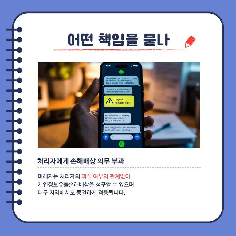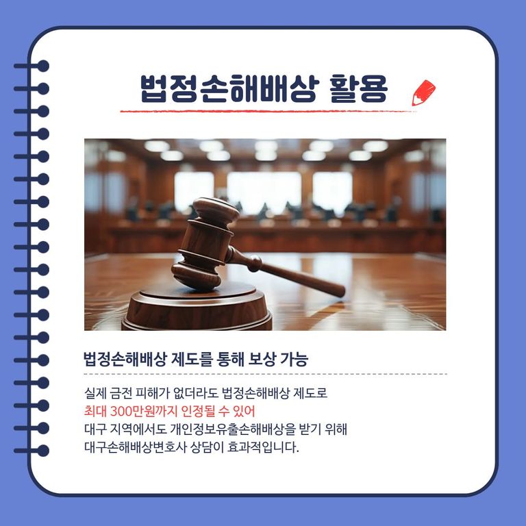 대구 지역에서도 동일한 기준이 적용되며 피해자는 개인정보유출손해배상을 청구할 수 있습니다.
