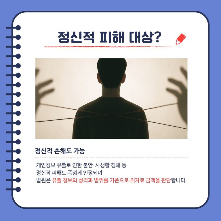 법원은 유출된 정보의 민감성, 노출 범위 등을 고려해 위자료 수준을 개별적으로 판단하게 됩니다.