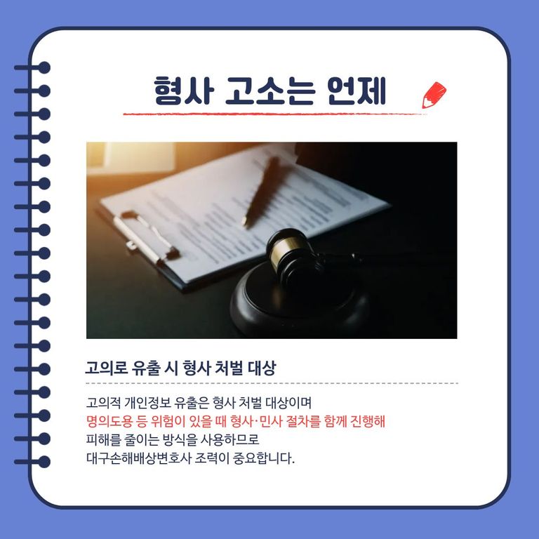 기업 또는 개인이 고의로 정보를 유출한 경우 형사 처벌 대상이 됩니다.