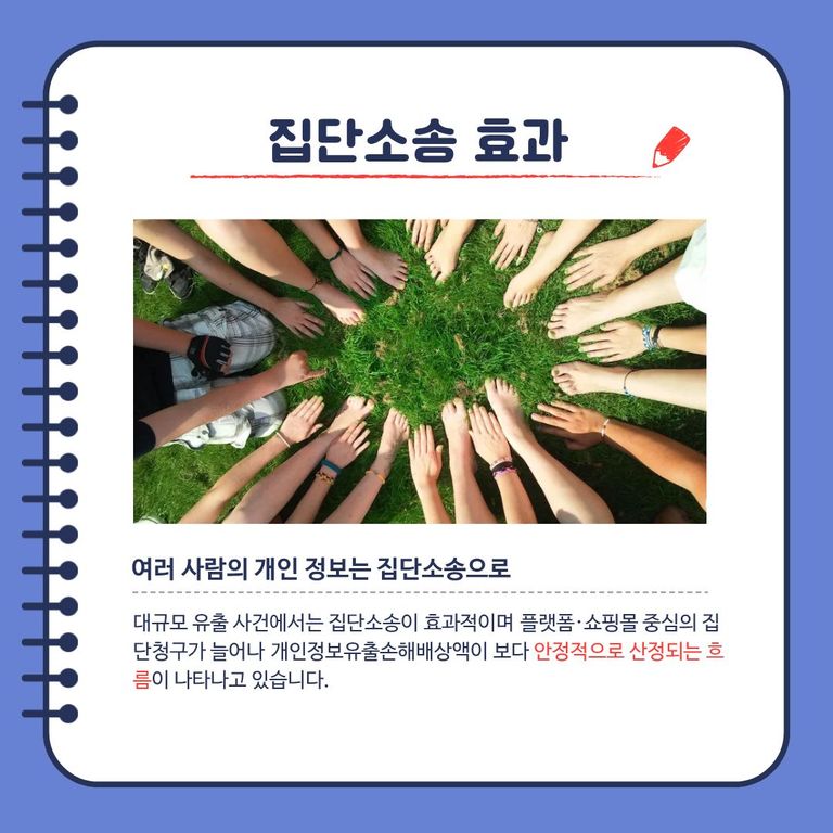 여러 사람의 개인정보가 동시에 유출된 사건에서는 집단소송 방식이 효율적입니다.