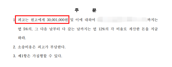 ✔ 피고는 원고에게 30,000,000원을 지급하라.