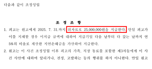 또한, 조정 조항에 따라 사건 이후 피고 및 그 가족, 직장 동료 등 제3자에게 해당 사건을 알리거나 명예를 훼손하는 행위를 금지하도록 하여, 피고의 사회적, 심리적 부담을 최소화했습니다.