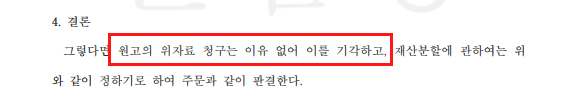 : 이에 만족하지 못한 원고가 위자료 및 재산분할 청구 소장 보내옴