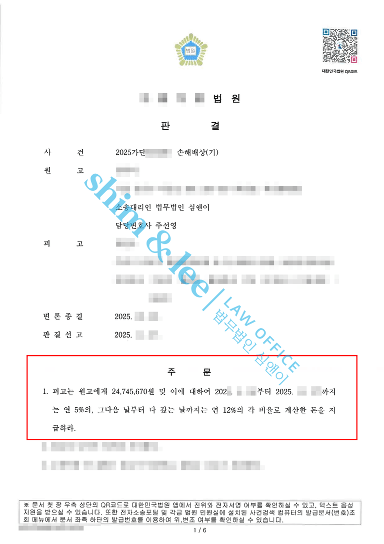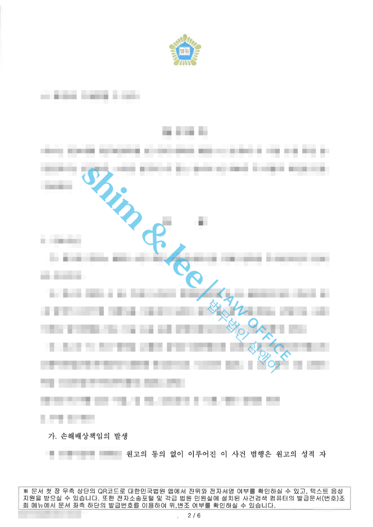 - 의뢰인은 형사소송 단계부터 심앤이와 함께 체계적으로 대응해 온 덕분에 피고의 불법행위가 명확히 인정되었고, 이어진 민사소송에서도 정당한 보상을 받을 수 있었습니다.