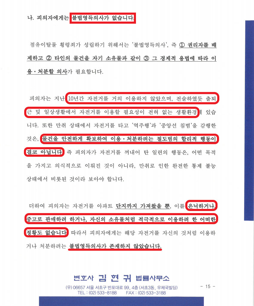 본 사건은 변호인의견서로 아래 내용을 주장하였습니다.