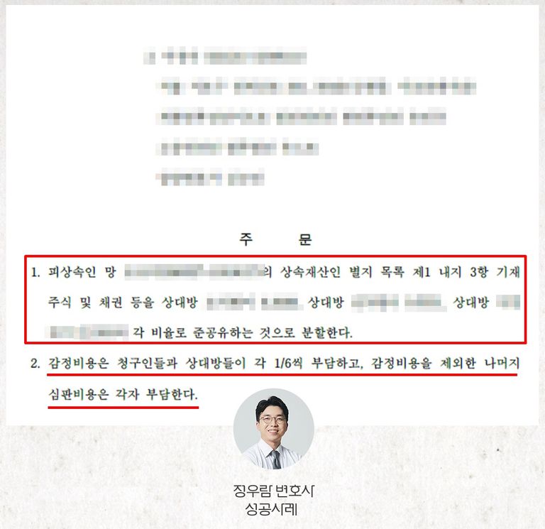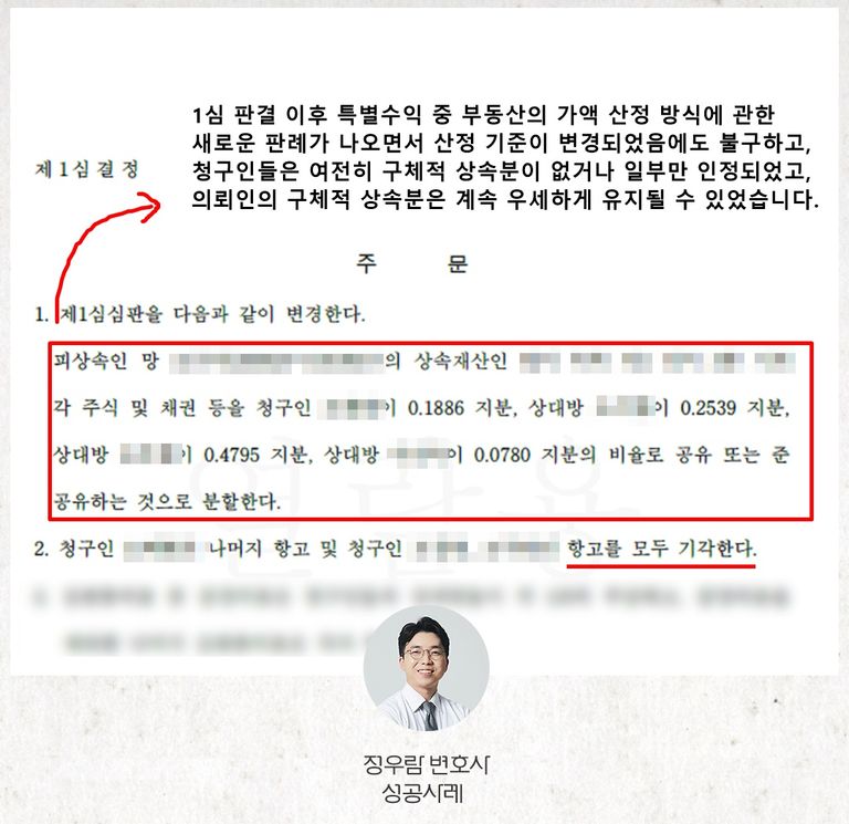 정우람 변호사는 재판 과정에서, 오히려 의뢰인의 특별수익이 더 적다는 사실을 성공적으로 입증하였습니다.