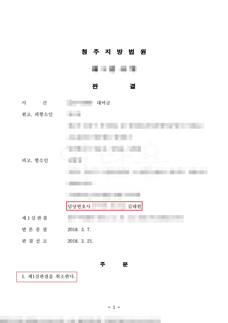 저는 피고의 소송대리인으로 1심에서 원고 승소 판결을 받은 사건이였지만
