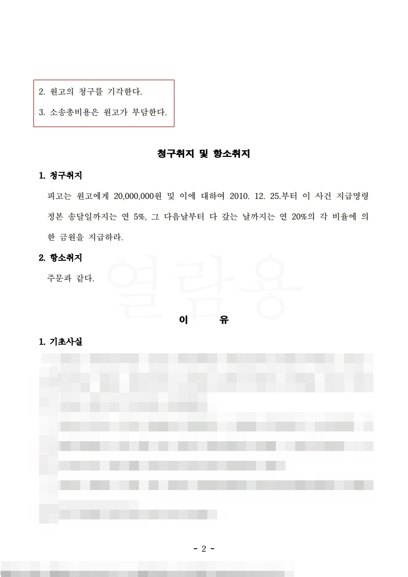 2심에서는 법원이 피고의 청구를 인정하는 피고 승소판결을 받았습니다.