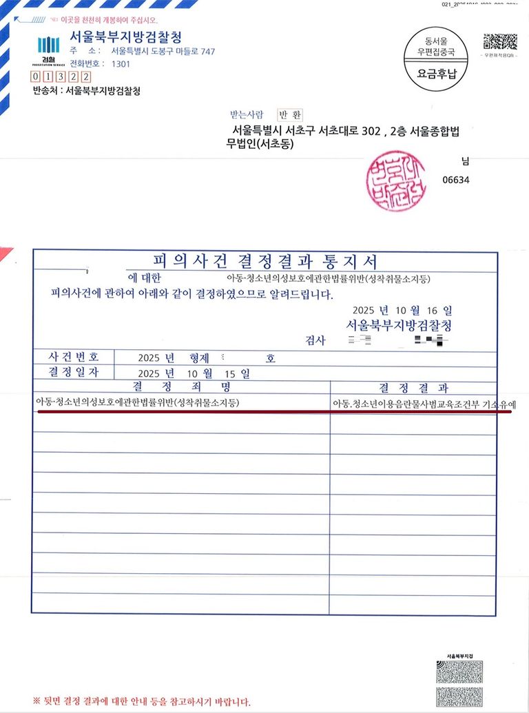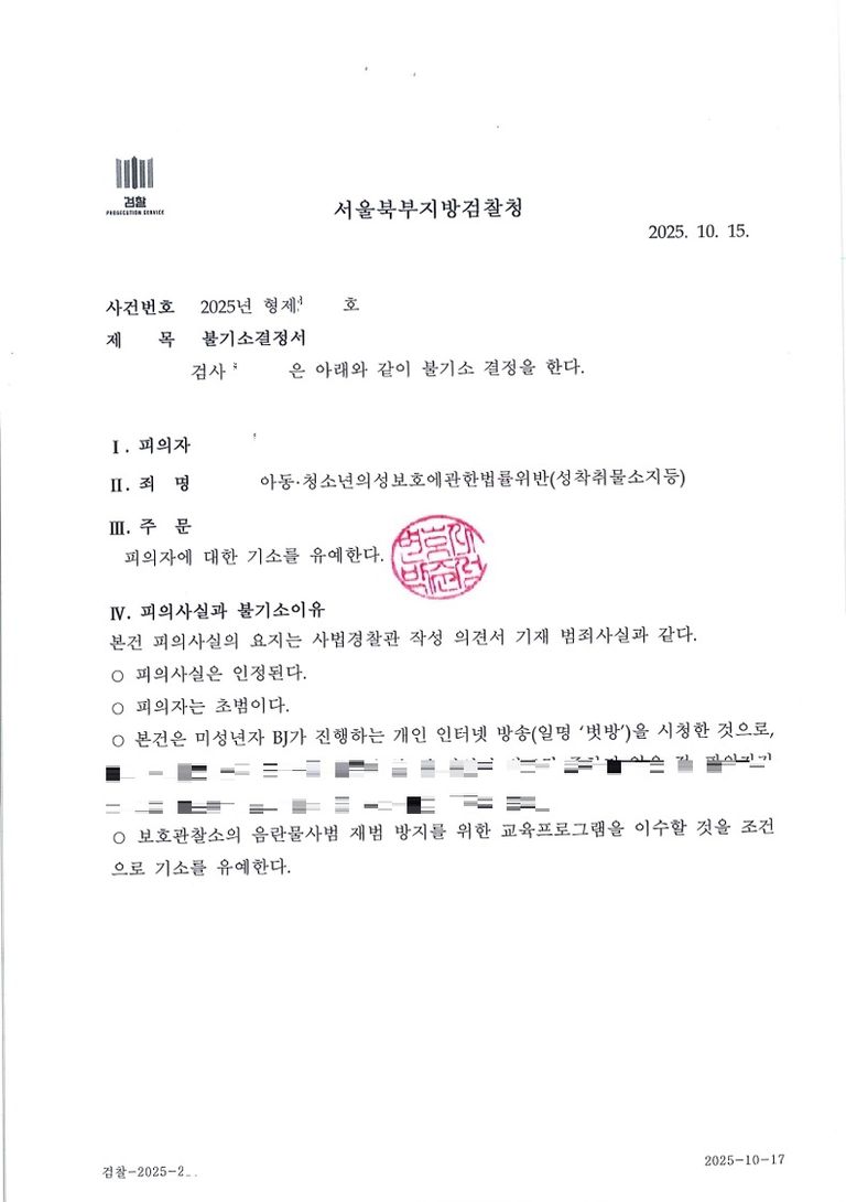 이 사건은 미성년자 벗방 Bj 방송을 녹화 소지하고 시청했던 사안으로 그 후에 저와 상담을 거쳐 자수 사건 진행했던 바 있습니다.