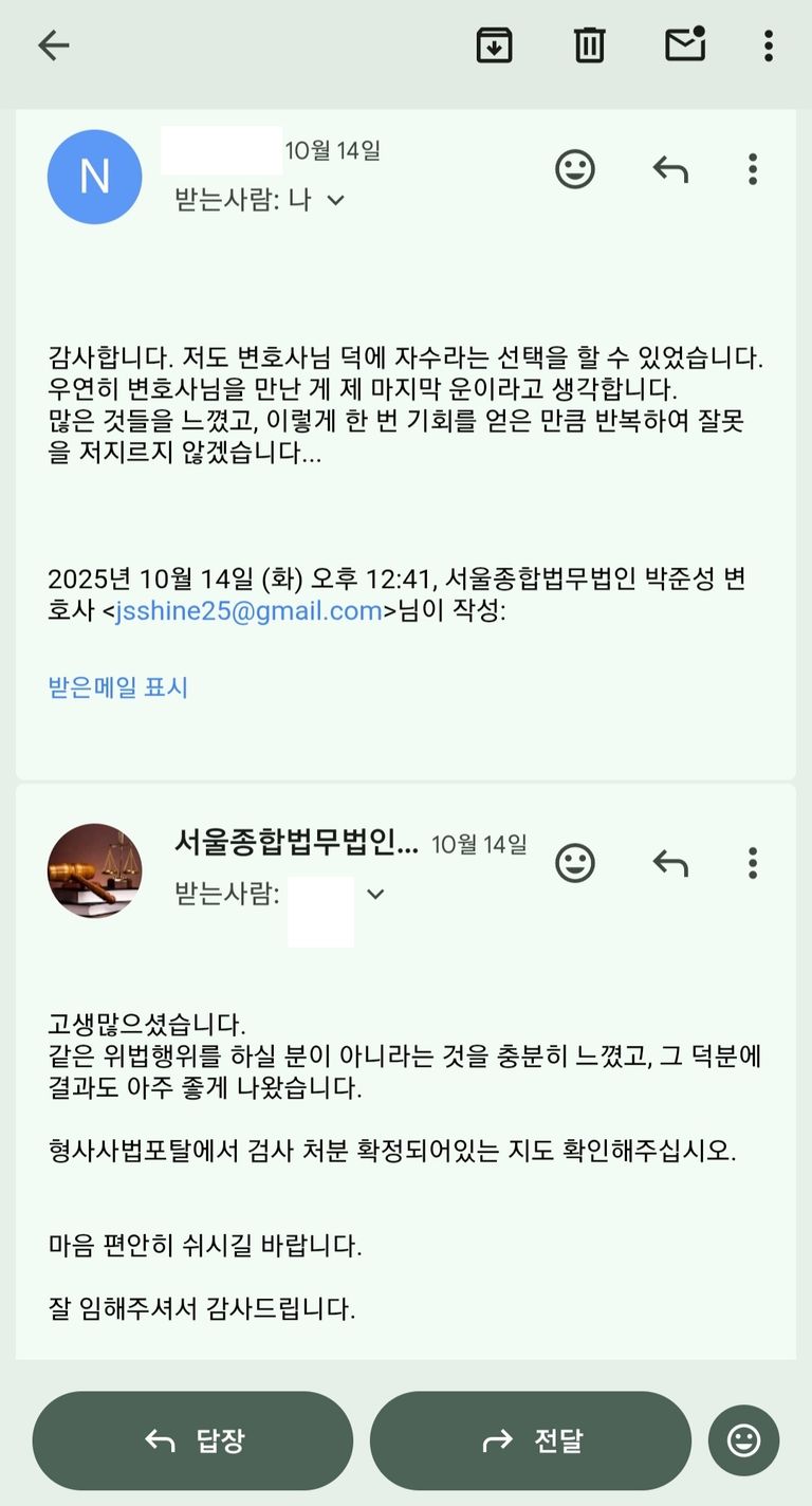 그리고 그 직후에 기소유예라는 아주 좋은 결과가 나올 수 있었습니다.