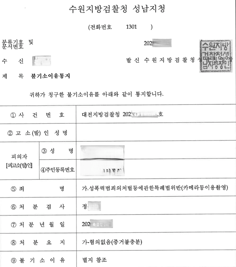 증거 불충분으로 ‘혐의없음’ 불기소 처분이 내려졌습니다.