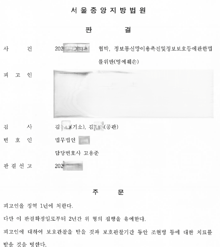 본 사건은 실형 가능성이 매우 높았던 협박·명예훼손 사건에서