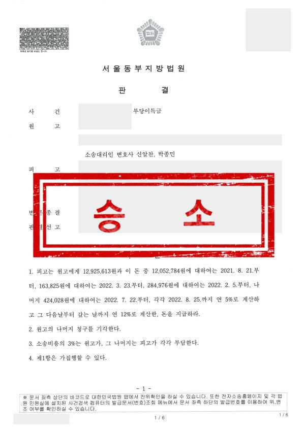 12,925,613원과 이자까지 모두 지급하라는 판결을 받았습니다.