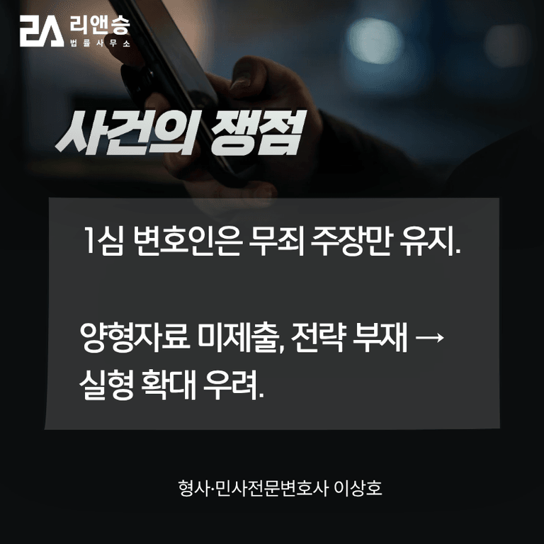 무죄 전략은 사실관계와 부합하지 않음을 판단항소심에서는 무죄 주장을 철회하고