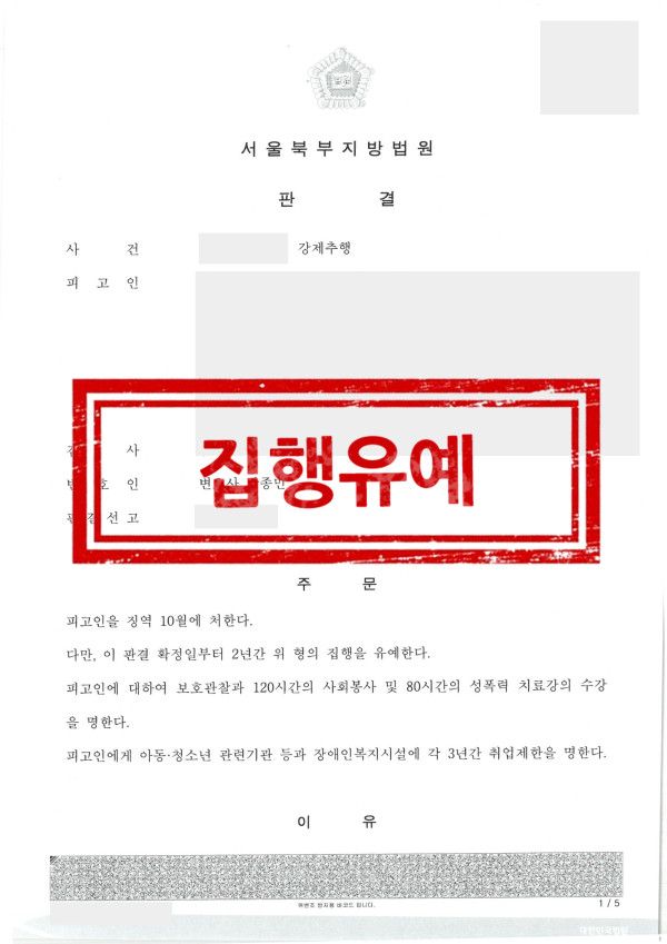 법원은 실형 대신 다음과 같이 선고했습니다.