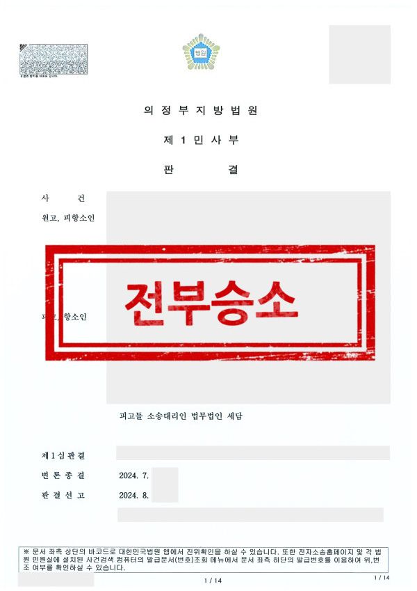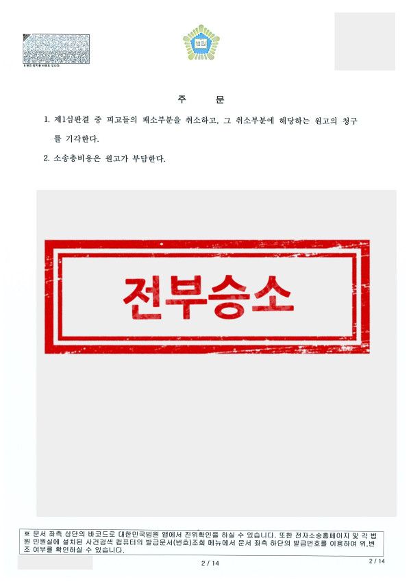 1심에서 의뢰인들이 패소했던 부분은 모두 취소되었고
