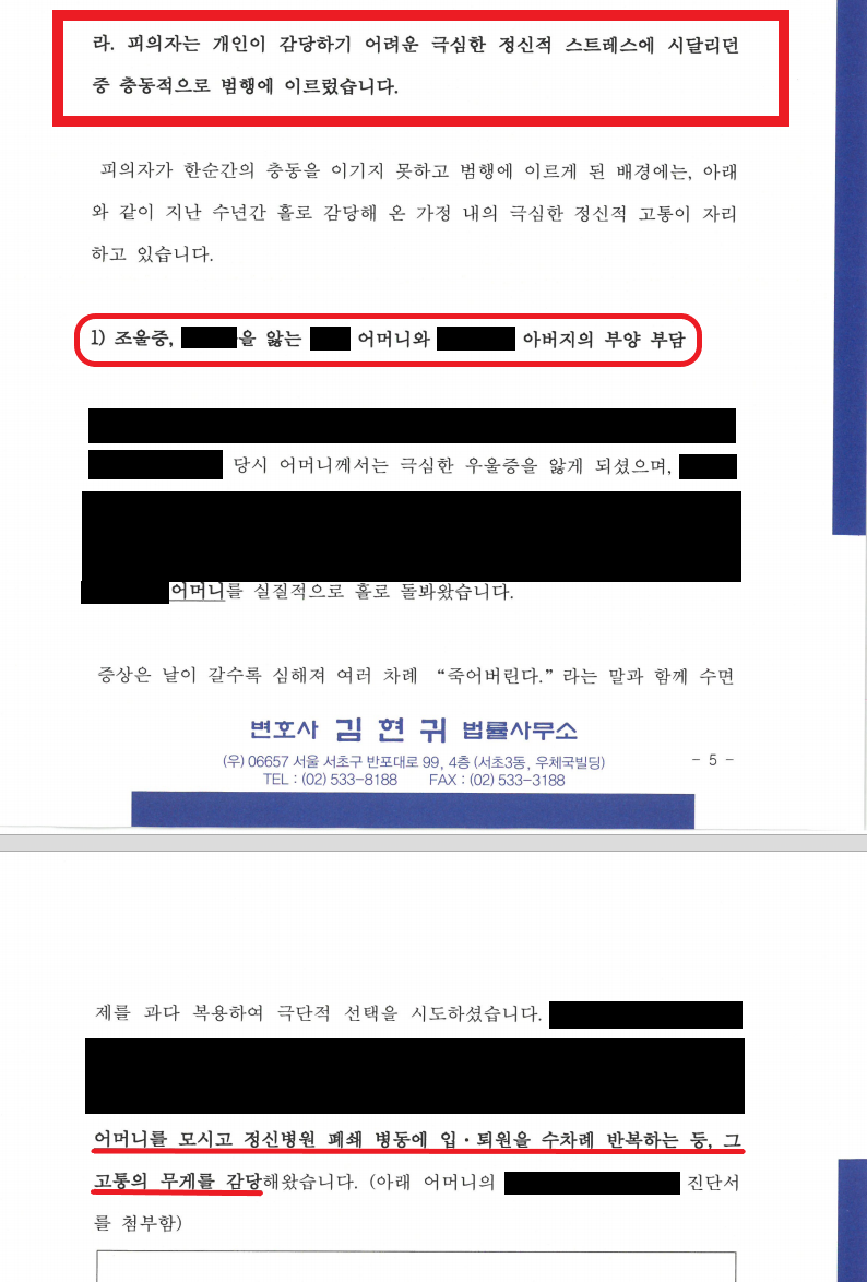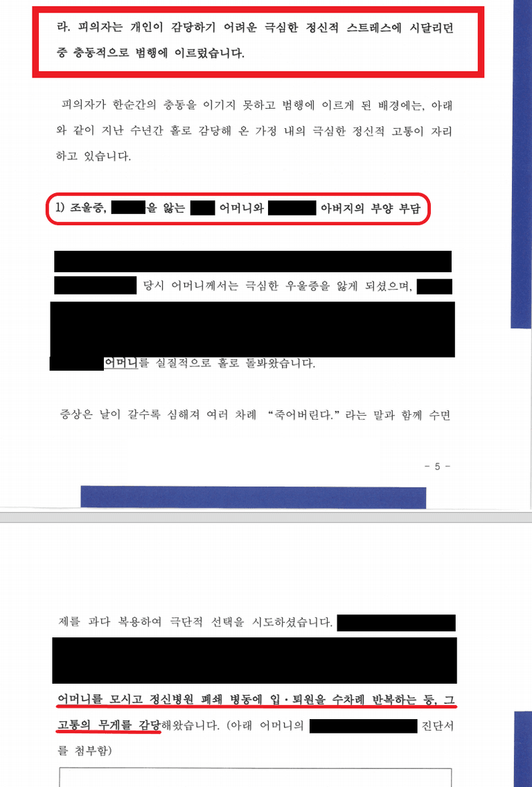 - 병원비, 치료비를 거의 전액을 부담해야 하는 상황이라, 경제적으로 매우 심한 압박감을 느끼고 있었음