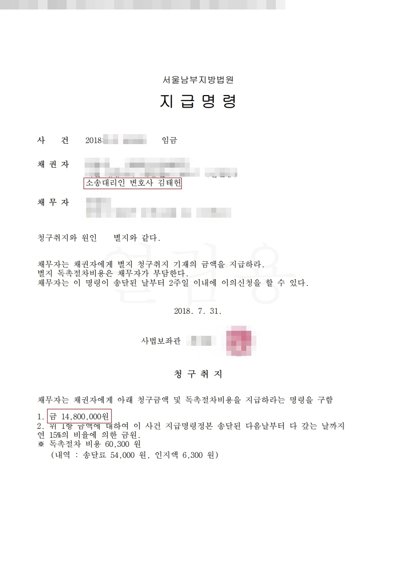 저는 원고를 대리하여 임금소송을 진행하였습니다.