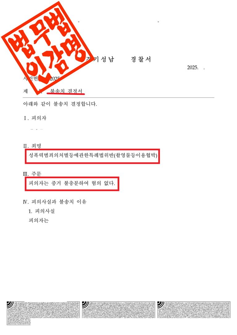 경기성남경찰서는 이 사건에 대해 다음과 같은 사유로 불송치 결정을 하였습니다.