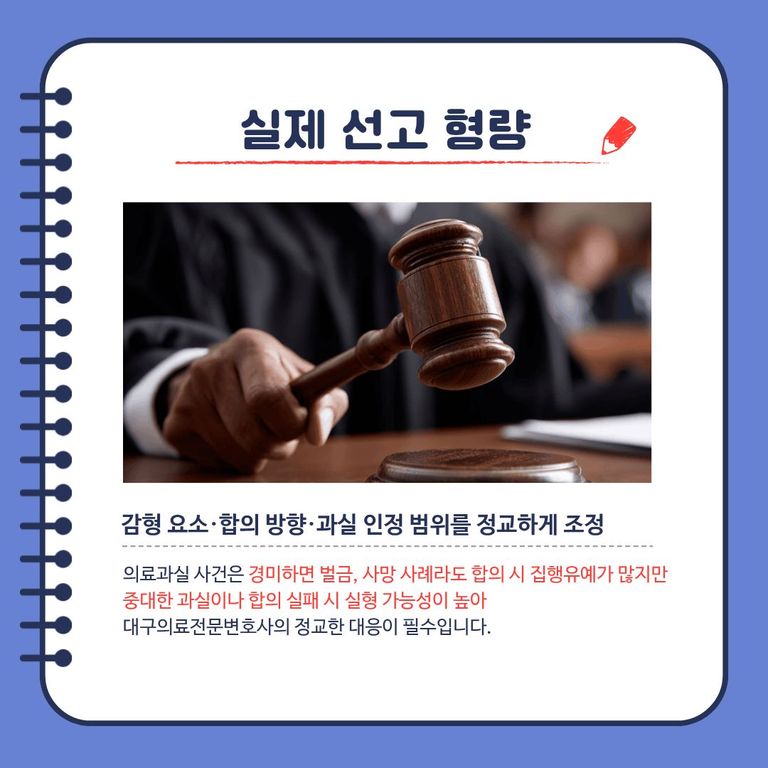 대구 지역 의료과실 사건은 유형에 따라 형량 폭이 넓게 형성됩니다.