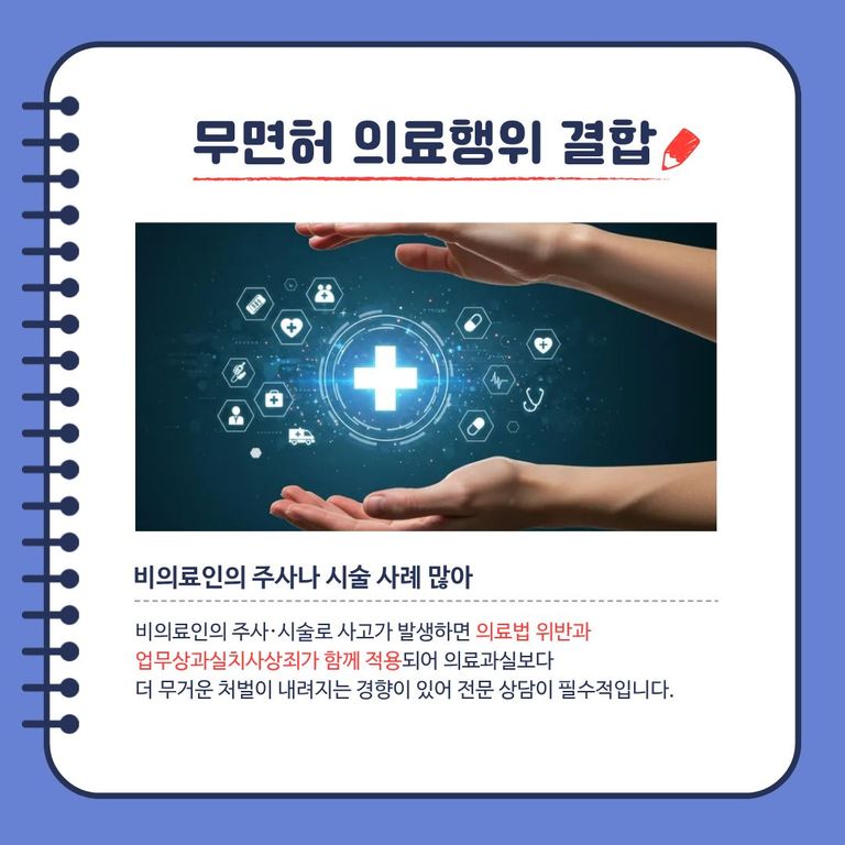 특히 무면허 의료행위는 형사처벌 기준이 엄격해 대구의료전문변호사 상담이 매우 필수적입니다.