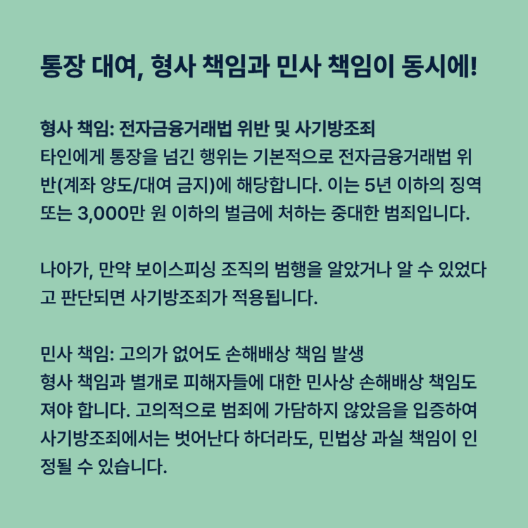 통장 대여, 형사 책임과 민사 책임이 동시에!