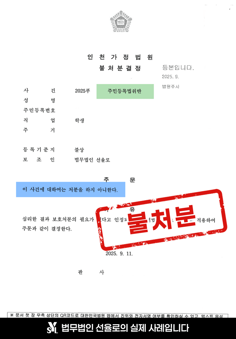 법원은 주민등록법위반 혐의에 대해 불처분 결정을 내림으로써