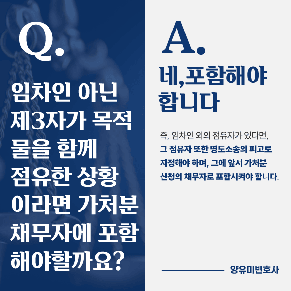 즉, 임차인 외의 점유자가 있다면, 그 점유자 또한 명도소송의 피고로 지정해야 하며,