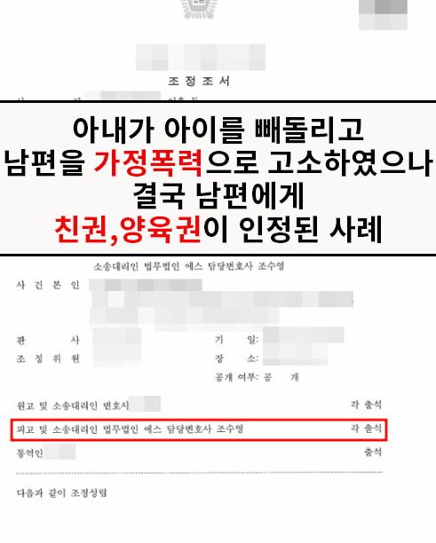 아내가 아이를 빼돌리고 남편을 가정폭력으로 고소하였으나 결국 남편에게 친권,양육권이 인정된 사례