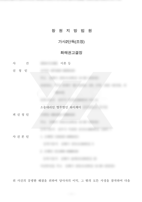 법무법인 YK의 조력으로, 법원에 조정에 관한 의견서 제출하여, 화해권고결정으로 마무리하였습니다.