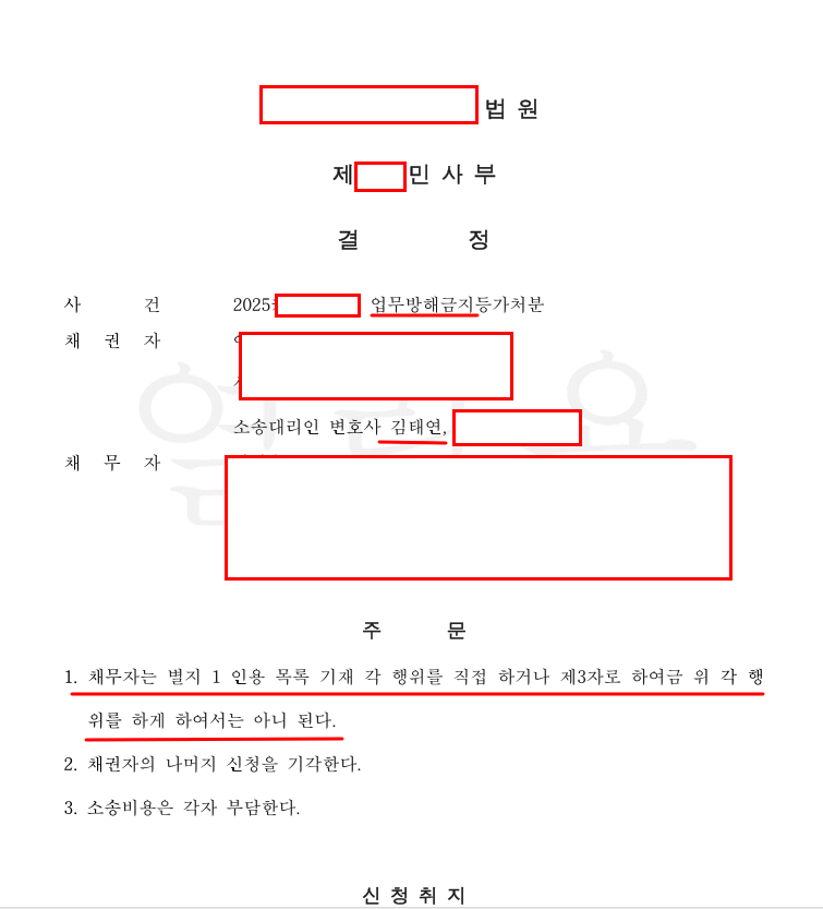 [태연 법률사무소 성공 사례, 업무방해죄 가처분 성공]