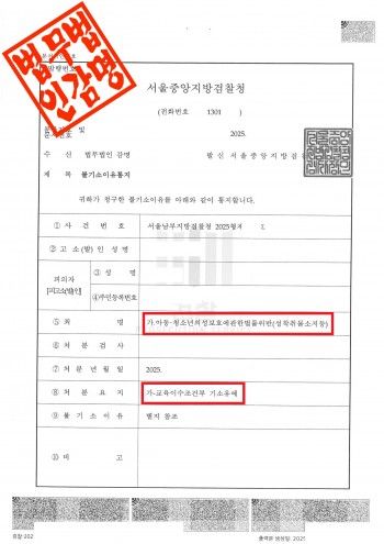 - 보호관찰소의 성폭력사범 재범방지 교육 이수를 조건으로 기소를 유예한다.