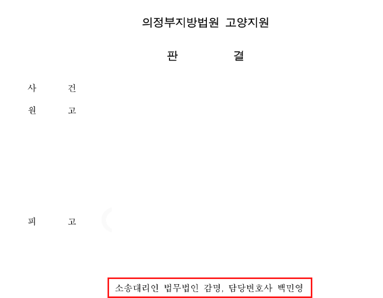 본 수행사례는 당소 백민영 변호사가 진행한 실제 소송을 기반으로 작성되었으며,