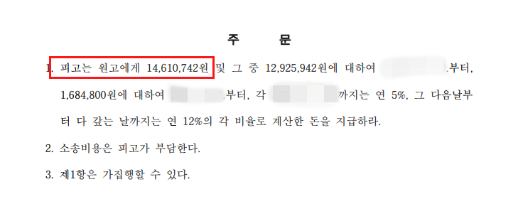 ✔ 피고는 원고에게 14,610,742원을 지급하라.