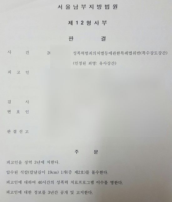 이 사건 인정된 죄명은 비록 유사강간이었으나 징역3년, 신상정보 3년 공개고지, 식칼몰수가 선고되었습니다. 단순 유사강간의 형량은 사실관계에 따라 차이가 있으나 일반적으로는 2년 정도 선고되는 경우가 많고, 합의가 되면 거의 집행유예가 선고되는데요. 그와 비교하면 이 사건 형량이 꽤 높은 편이라고 할 수 있겠습니다. 재판부에서는 고육지책으로 유사강간으로 처벌하되 형량을 높이는 것을 선택한 것으로 판단됩니다.