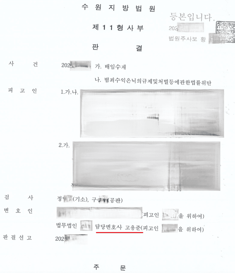 ![[경제범죄] 4년간 5억원 배임수재, 피해회복 없이 집행유예](/_next/image?url=https%3A%2F%2Fd2ai3ajp99ywjy.cloudfront.net%2Fuploads%2Ftitleimage%2Foriginal%2F5c2333e6227b15a91df80b60-original.jpg&w=3840&q=75)
