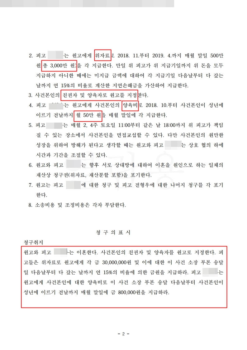 이 사건에서는 양육비 청구가 서울가정법원 양육비 기준표상의 기준대로 선고가 되어 양육비 부분이 많이 아쉽지만 결과적으로 원고의 청구 대부분을 대부분 인정해준 원고 승소 판결이였습니다.